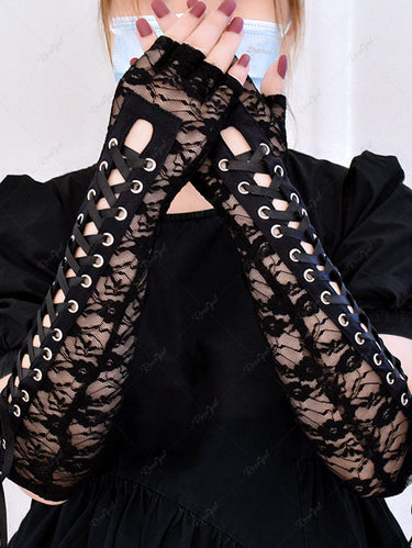 💗Stephanie Loves💗 Long Floral Lace Lace-up Half Finger Gloves