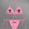 Gothic Angel Letter Cupid Print Halter Backless Valentines String Bikini Set