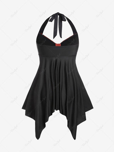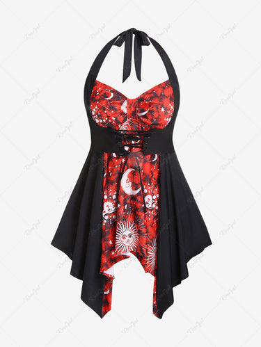 Gothic Plus Size Halter Sun Moon Print Lace-up Swim Top