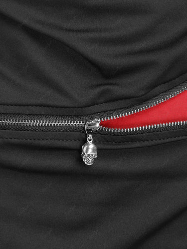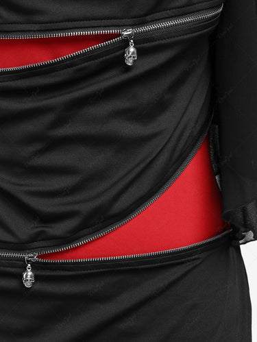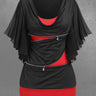 Gothic Cowl Front Colorblock Zippered Butterfly Sleeve Top