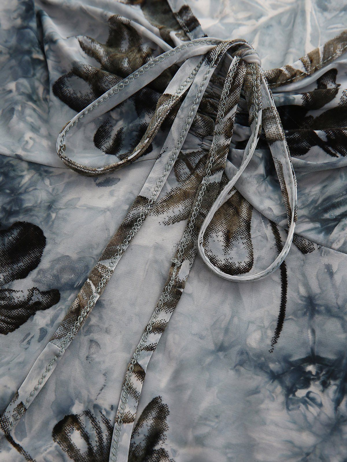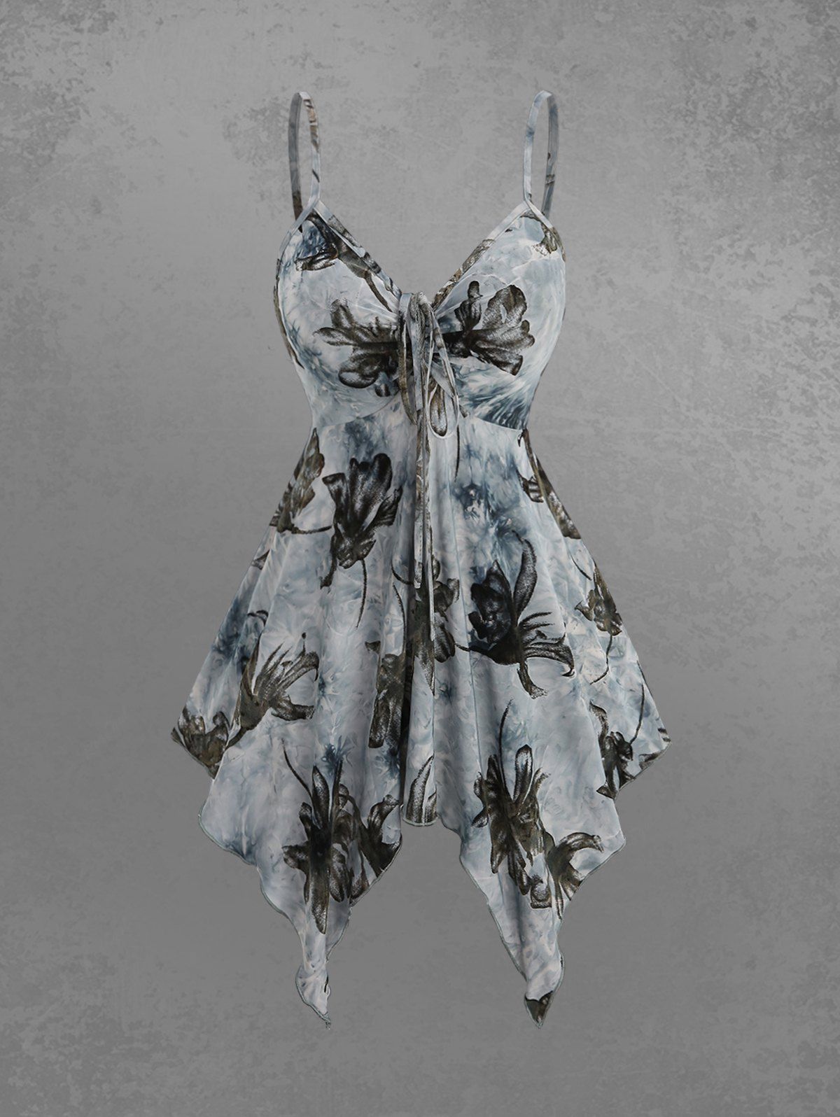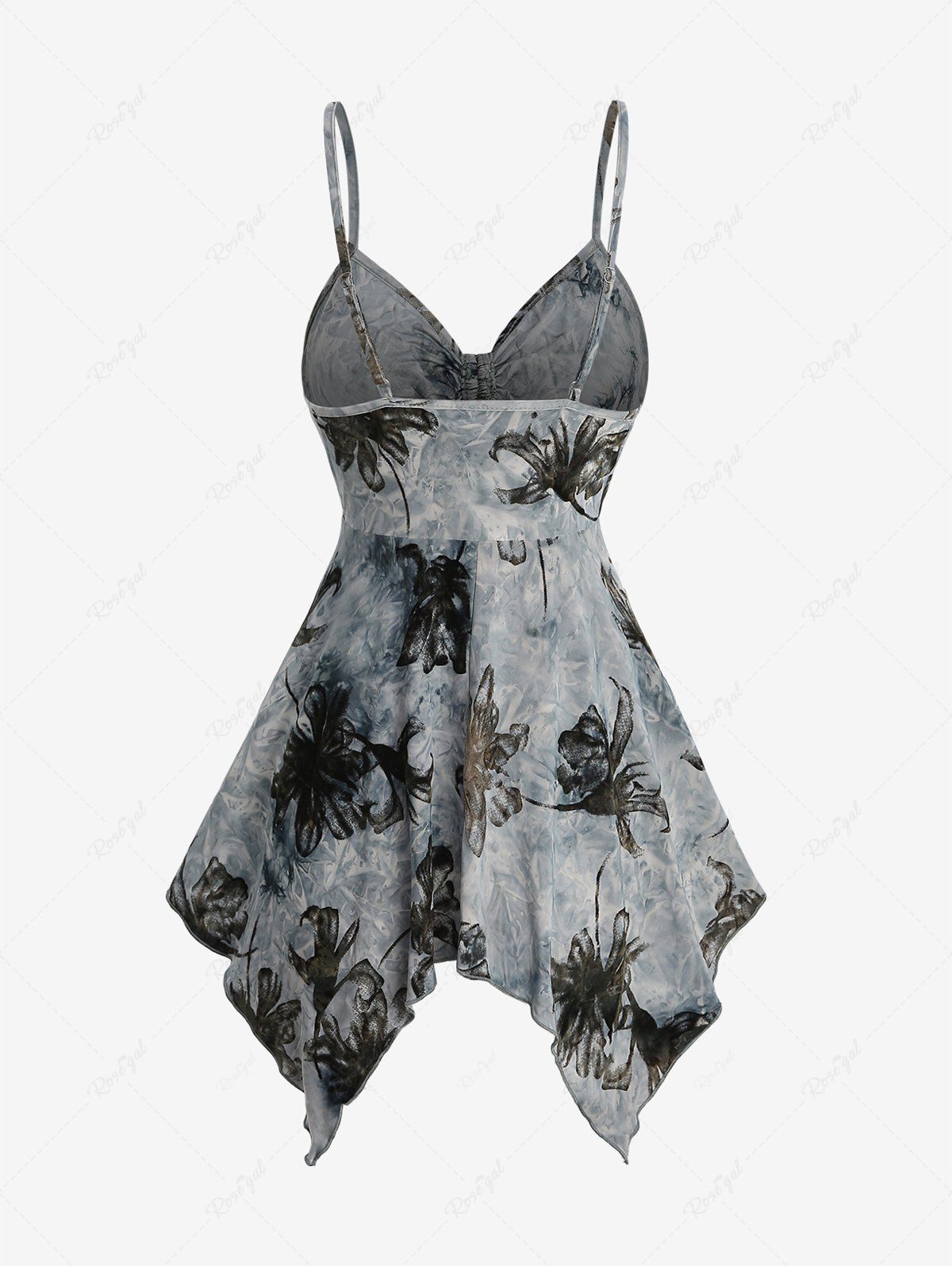Gothic Floral Flocking Tie Dye Ombre Distressed Cinched Backless Asymmetric Handkerchief Cami Top
