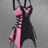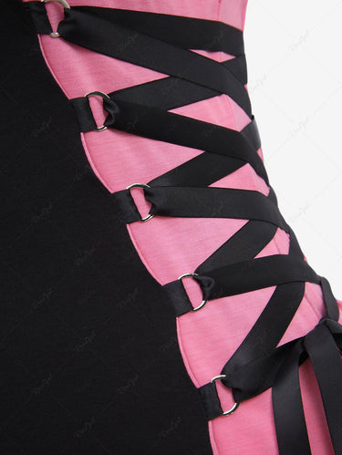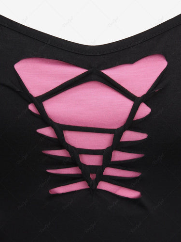 Gothic Plus Size Lace Up Ripped Braided Buckle Grommet Asymmetric Patchwork Backless Tank Top