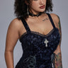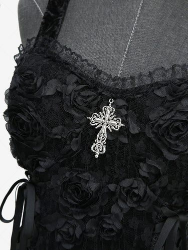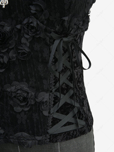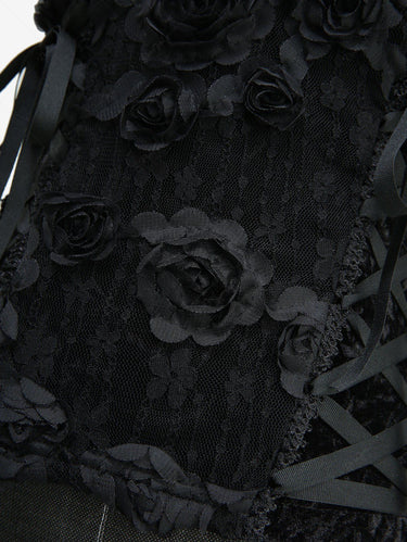 Gothic Stereo Rose Flowers Lace Jacquard Cross Lace-up Velvet Patchwork Tank Top