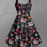 Gothic Plus Size Colorful Floral Cat Heart Wing Print Valentines A Line Backless Dress