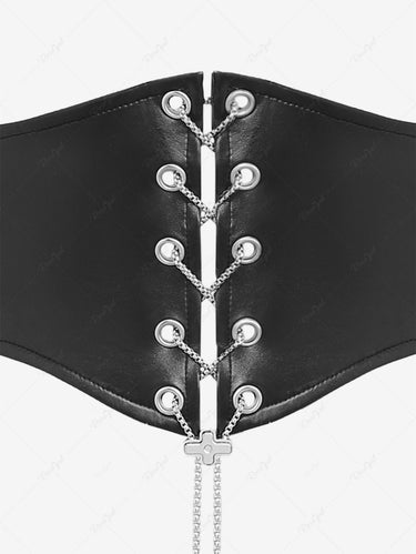 Gothic Chain Braided Lace Up PU Panel Star Rivet Corset Belt