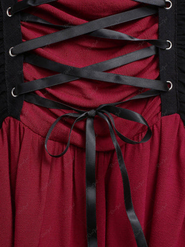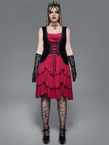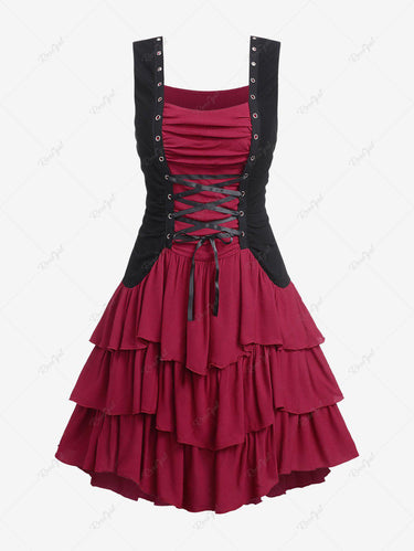 šŸ’—Lauren LovesšŸ’—Gothic Plus Size Grommets Two Tone Lace-up Ruched Layered Tank Dress