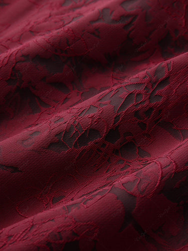 Gothic Cold Shoulder Floral Jacquard Buckle Applique Layered Ruffles A Line Dress