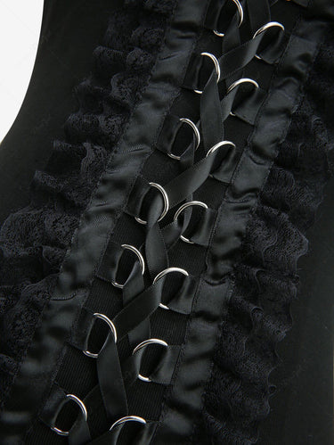 Gothic Lace Up Braided Lace-trim Solid Halter Top