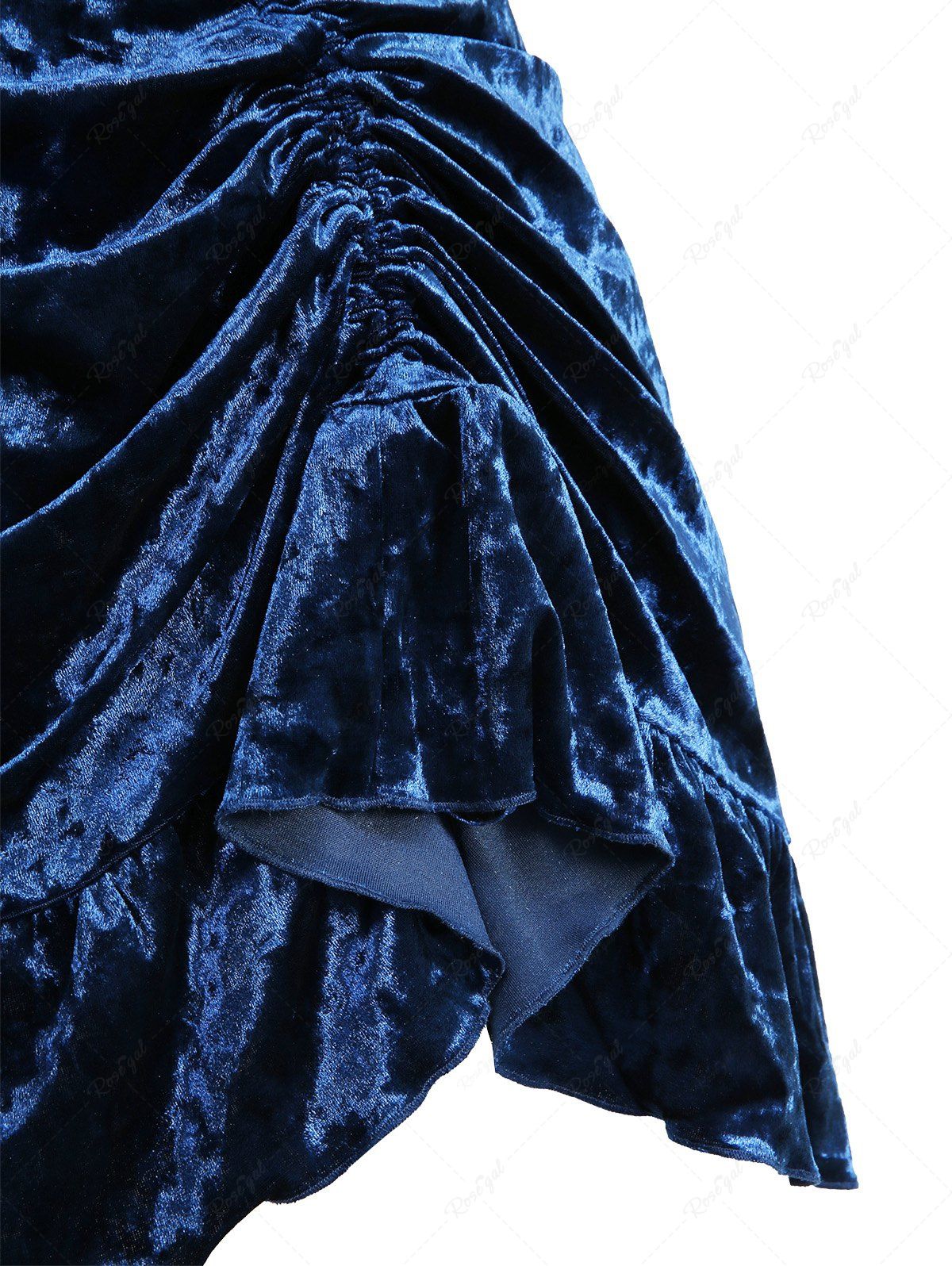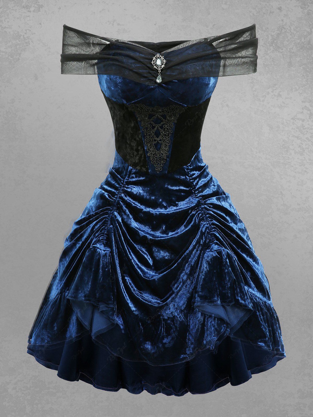 Gothic Off The Shoulder Applique Ruched Cinched A Line Velvet Dress