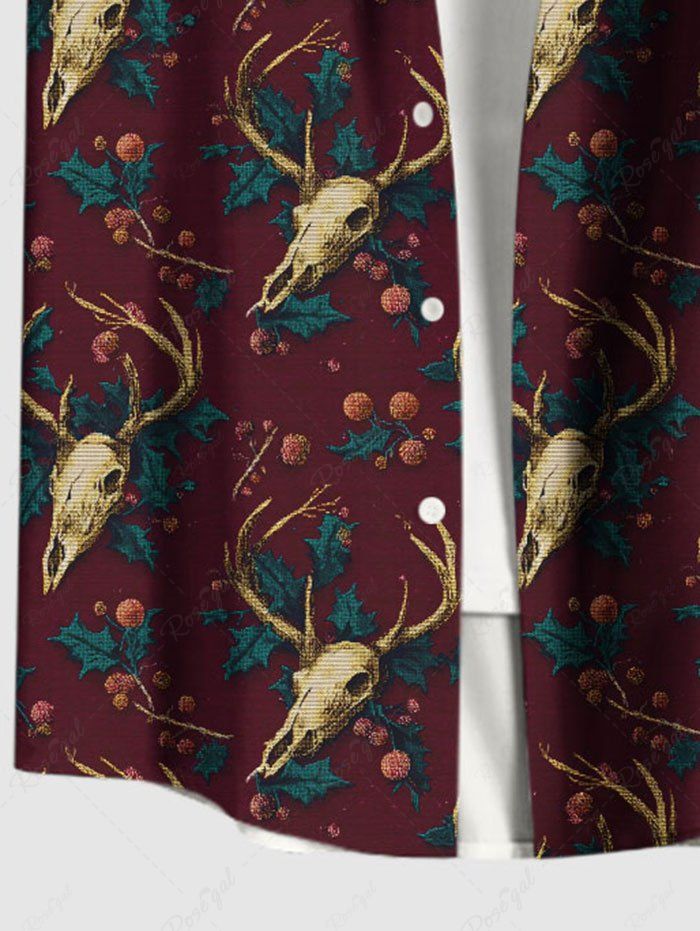 Gothic Plus Size Christmas Elk Holly Print Button Pocket Shirt For Men