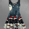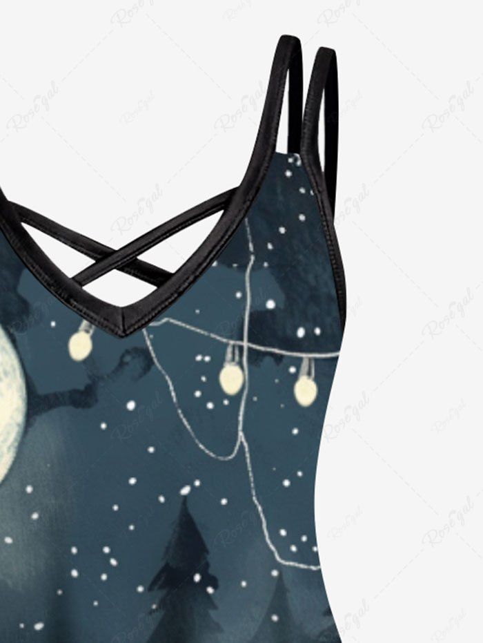 Gothic Plus Size Christmas Hat Cat Holly Light Moon Print Crisscross A Line Cami Dress