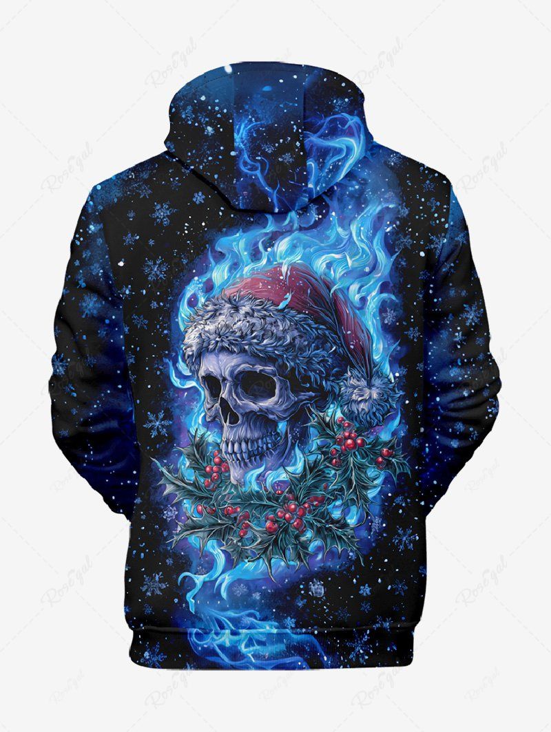 Gothic Plus Size Christmas Hat Skull Snowflake Flame Holly Fruit Print Drawstring Pockets Hoodie For Men