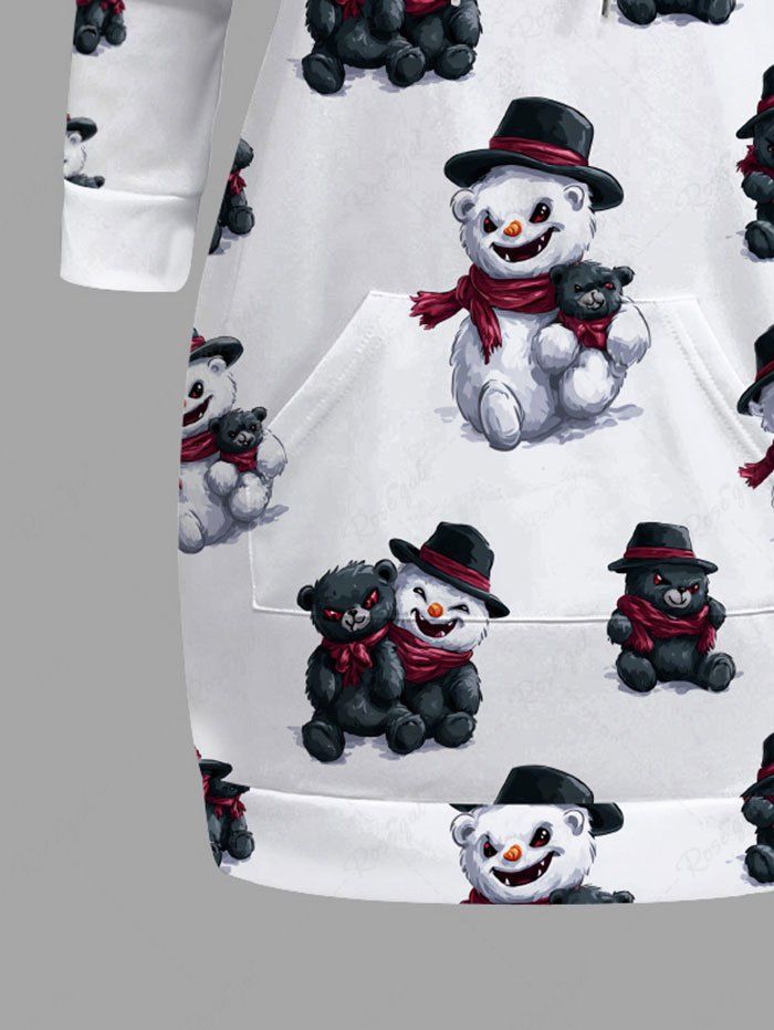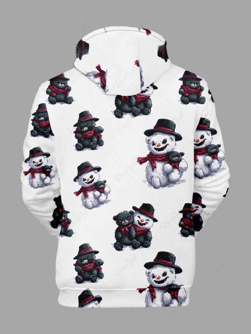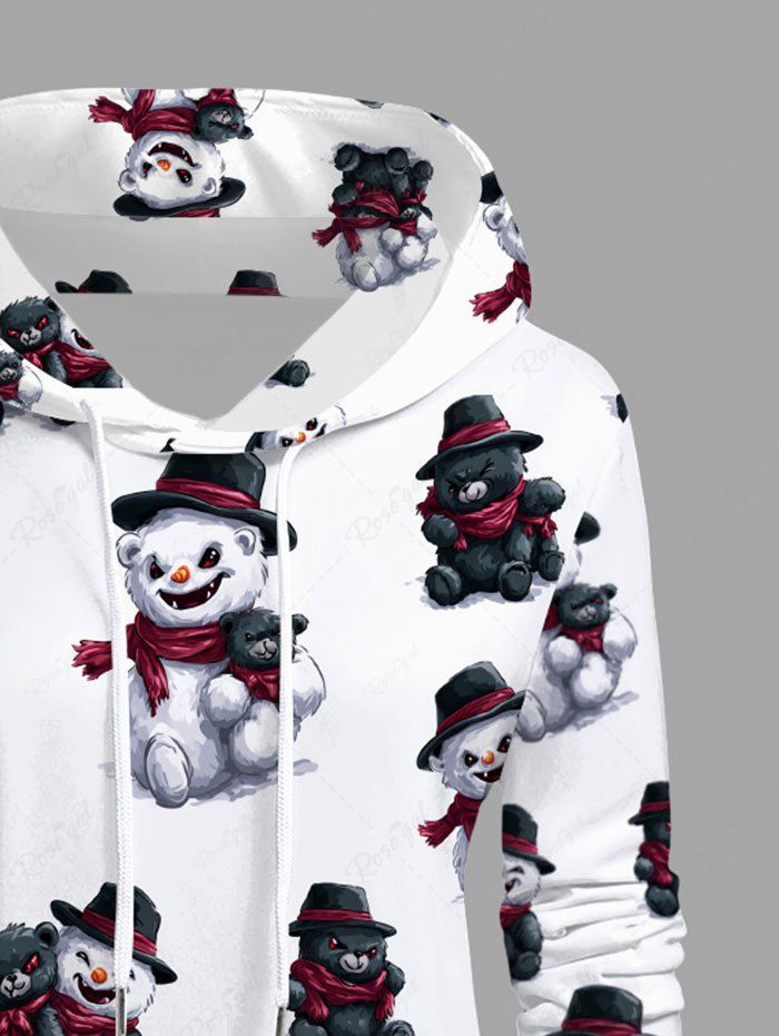 Gothic Plus Size Christmas Monster Snowman Bear Print Pocket Drawstring Pullover Long Sleeves Hoodie For Men