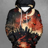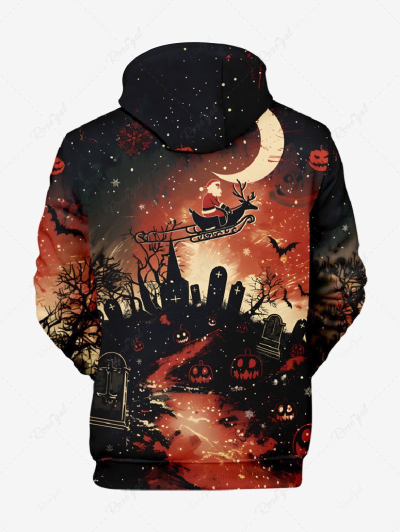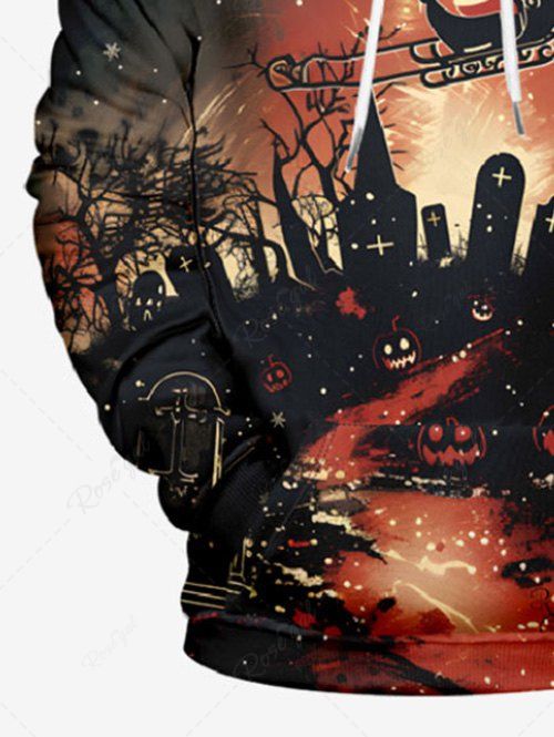 Gothic Plus Size Christmas Moon Santa Claus Elk Sled Pumpkin Tomb Print Drawsring Pockets Hoodie For Men