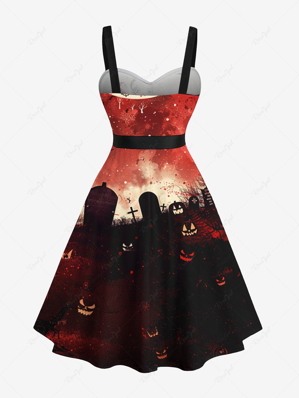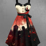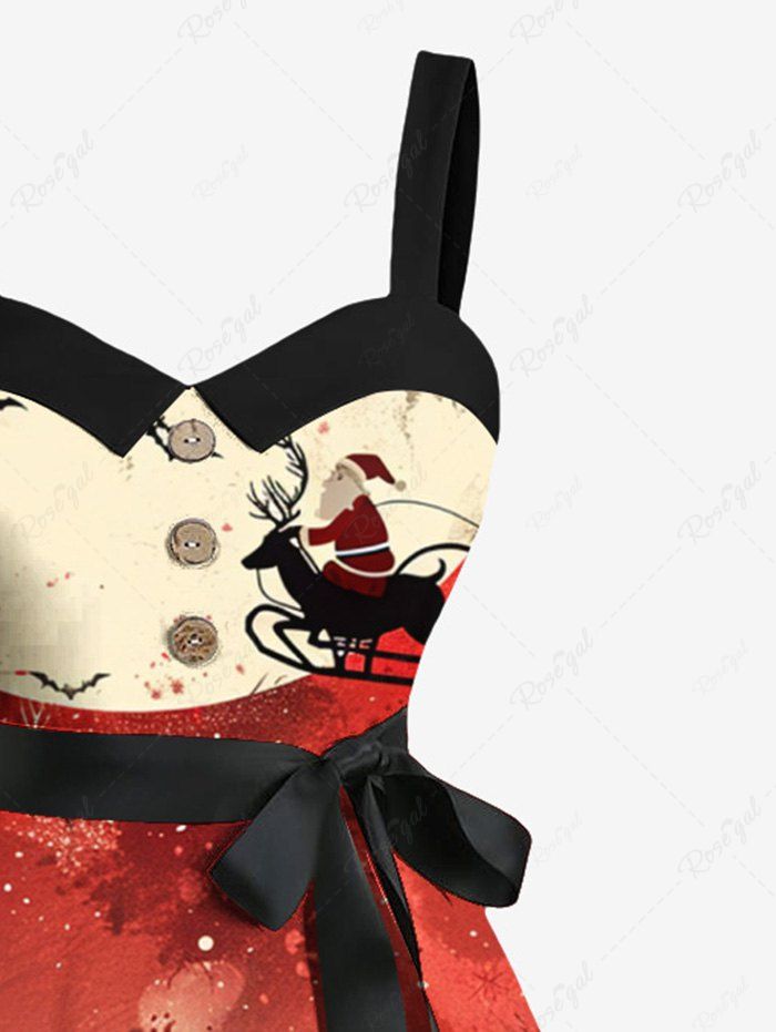 Gothic Plus Size Christmas Santa Claus Sled Moon Tomb Print Buttons Turn Down Collar Dress With Belt