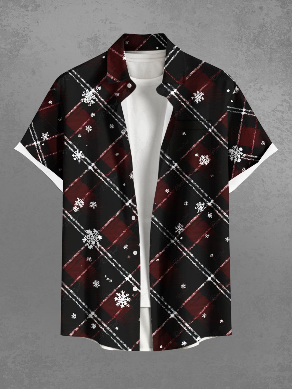 Gothic Plus Size Christmas Snowflake Ombre Plaid Print Button Pocket Shirt For Men