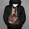 Gothic Plus Size Christmas Tree Ball Lady Elf Print Drawstring Pockets Hoodie For Men