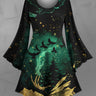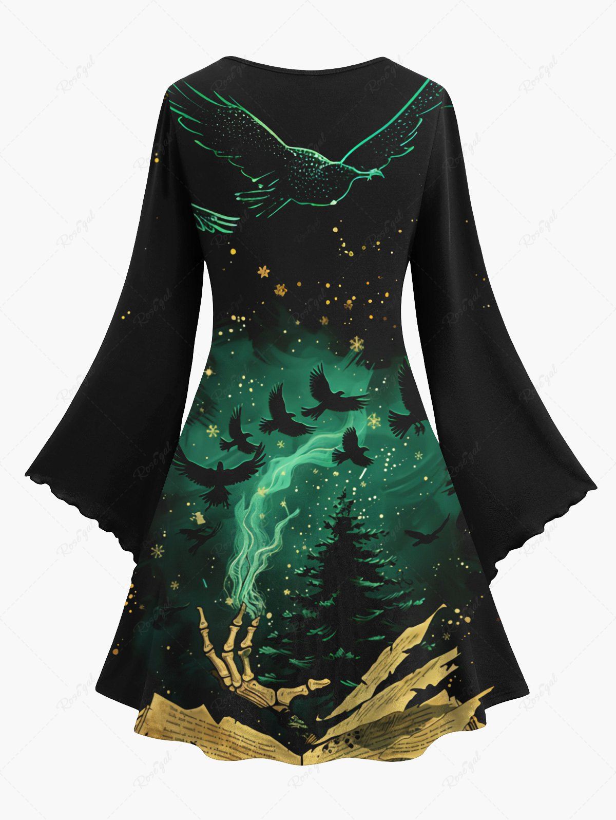Gothic Plus Size Christmas Tree Eagle Snowflake Newspaper Print Flare Sleeves Dress