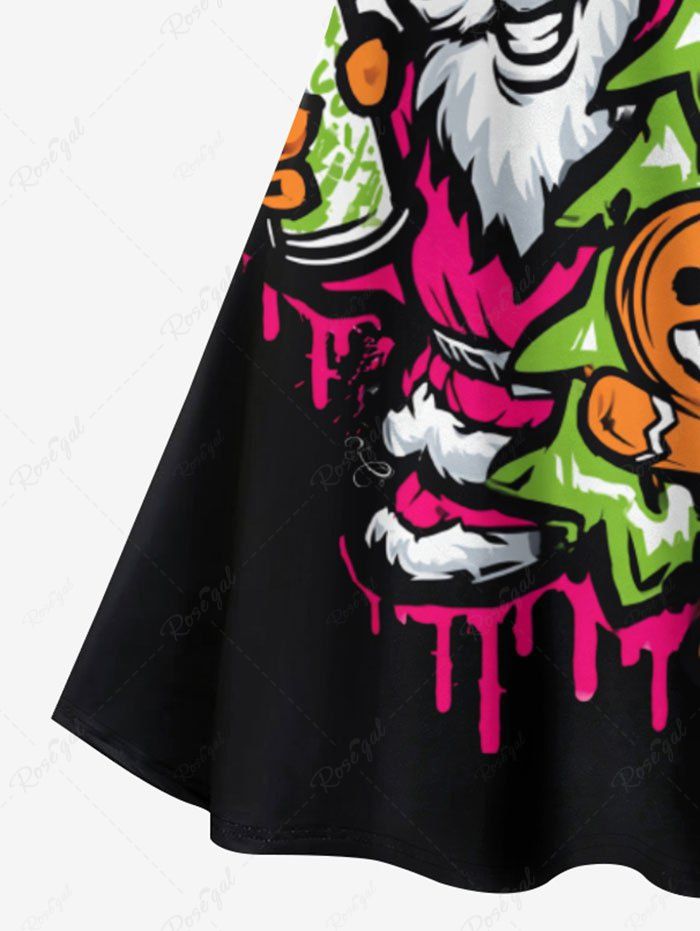 Gothic Plus Size Christmas Tree Santa Claus Gingerbread Painting Splatter Print Crisscross Cami Dress