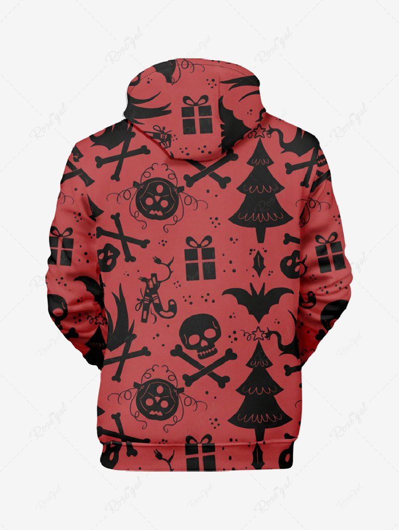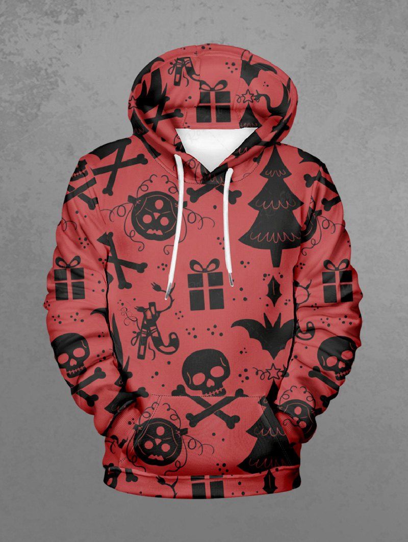 Gothic Plus Size Christmas Tree Skull Butterfly Print Pullover Long Sleeves Hoodie For Men