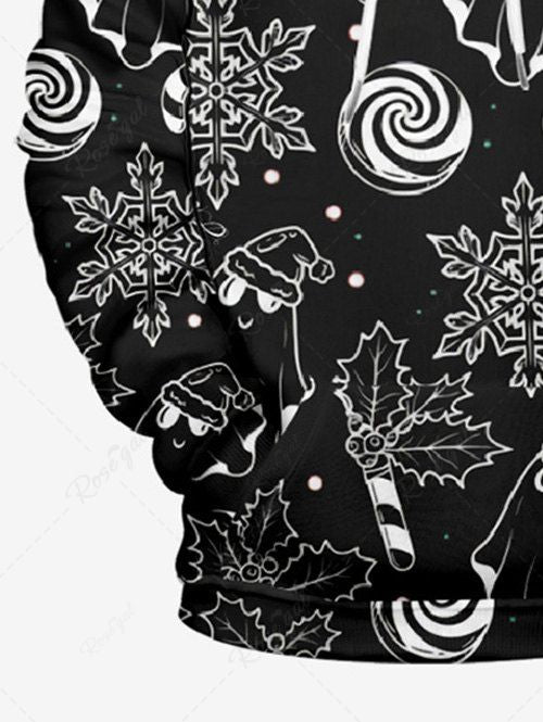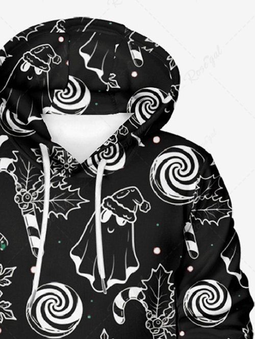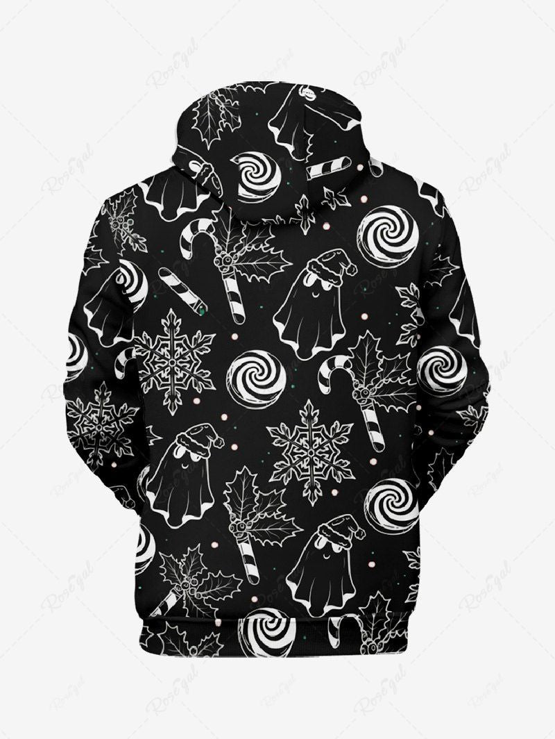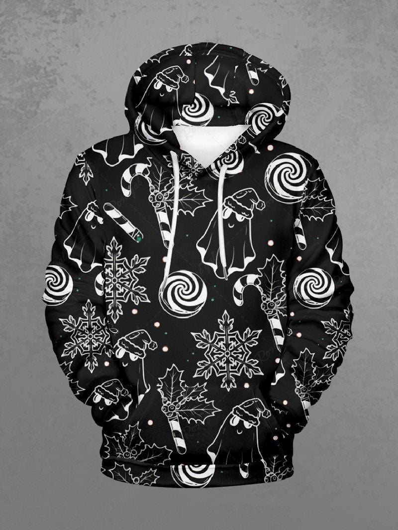 Gothic Plus Size Ghost Snowflake Candy Print Christmas Pocket Drawstring Pullover Long Sleeves Hoodie For Men