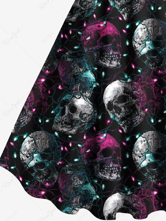 Gothic Plus Size Glitter Christmas Light Skull Print A Line Dress