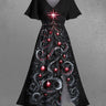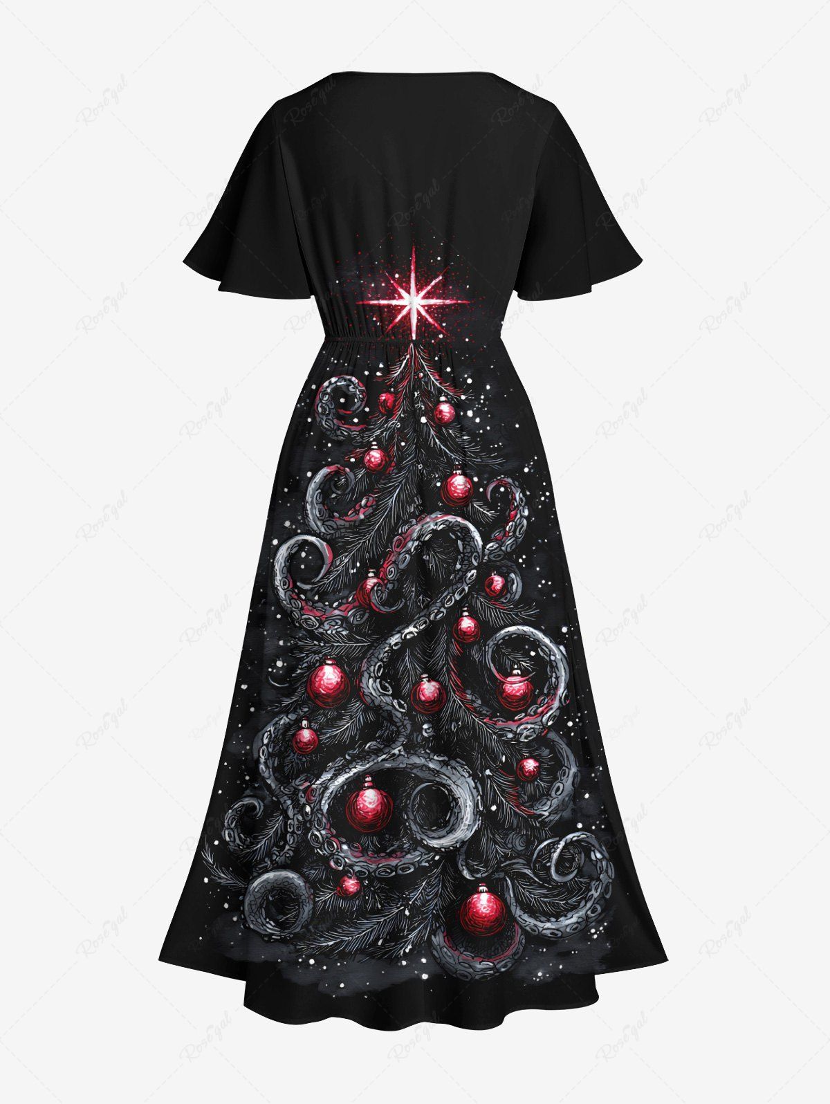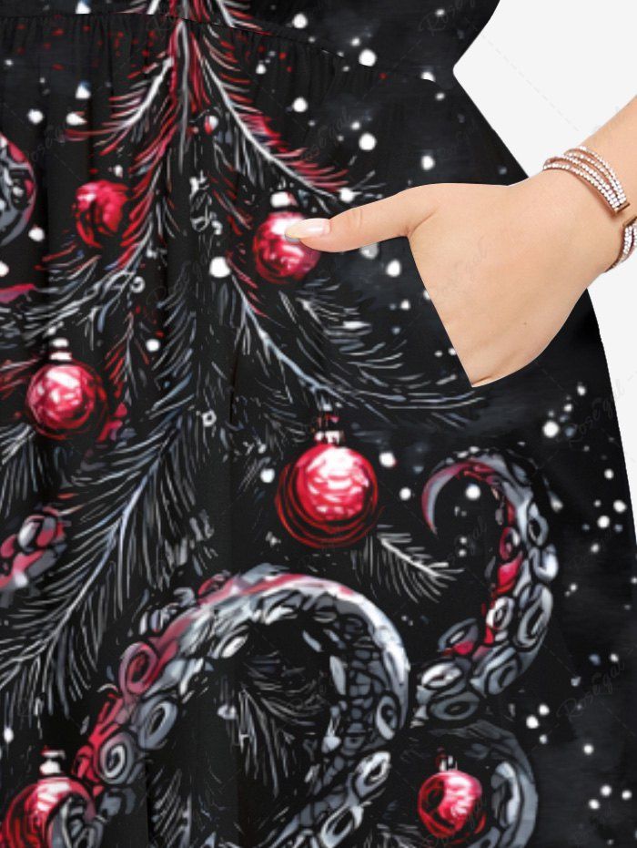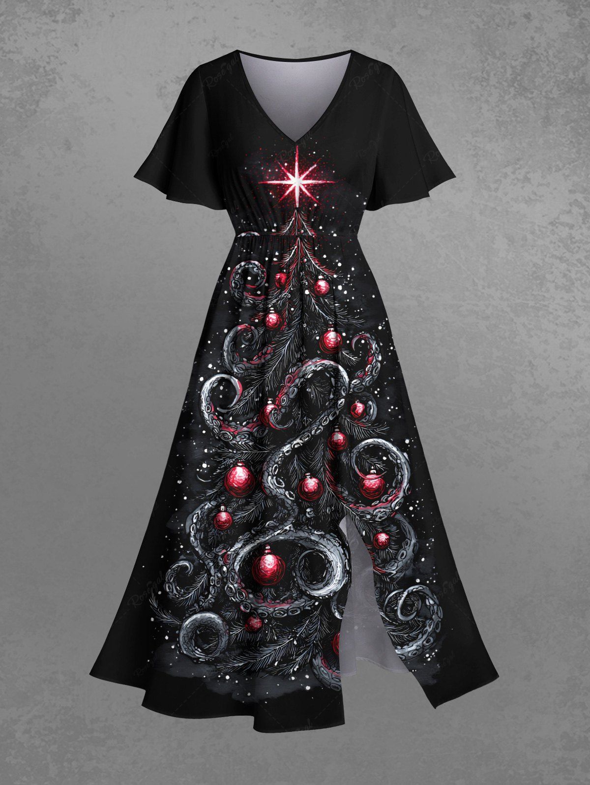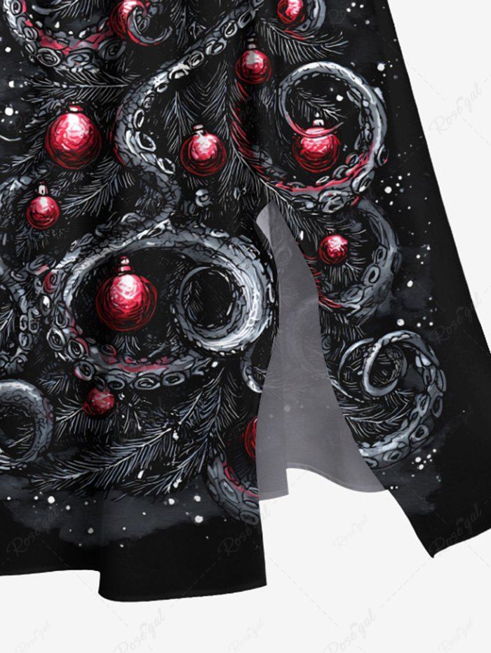 Gothic Plus Size Octopus Christmas Tree Ball Print Split Pocket A Line Midi Dress