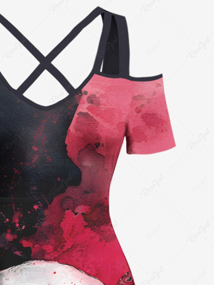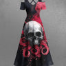 Gothic Plus Size Skull Octopus Print Cold Shoulder Crisscross A Line Maxi Dress