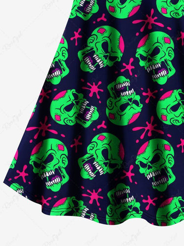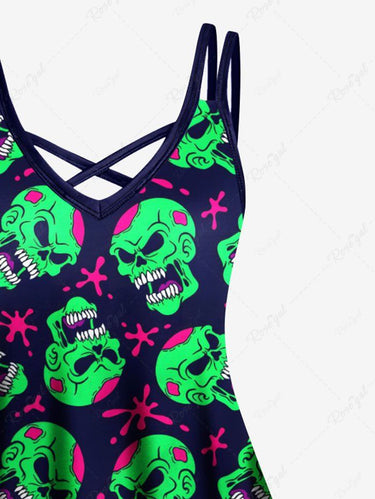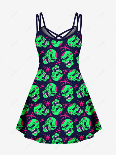 Gothic Plus Size Skull Painting Splatter Print Crisscross A Line Cami Dress Couple's Outfits