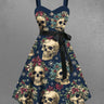 Gothic Plus Size Skulls Flowers Snowflake Print Buttons Turn Down Collar Dress With Belt