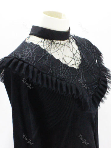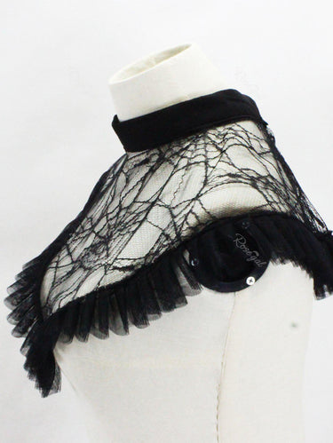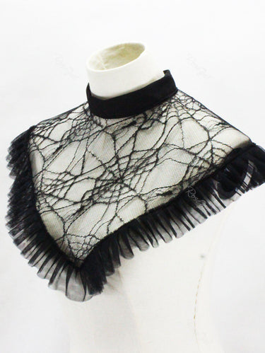 Gothic Spider Web Ruffled Mesh Detachable Collar