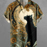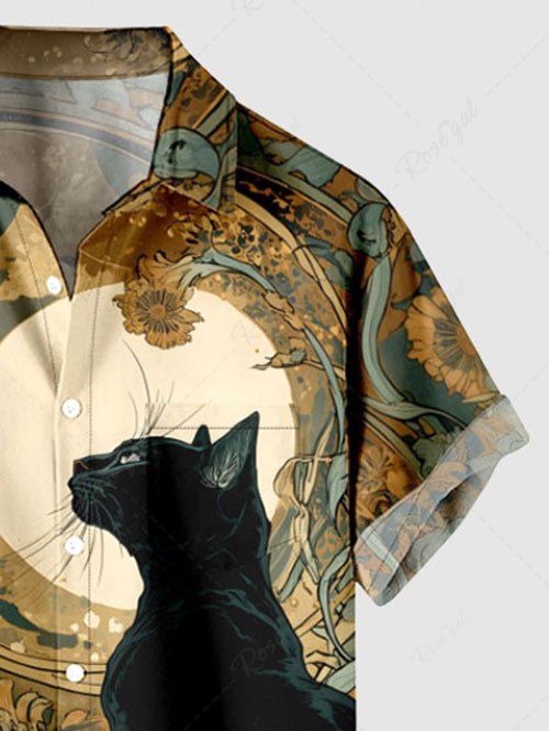 Gothic Plus Size Cat Flowers Moon Print Buttons Pocket Shirt For Men
