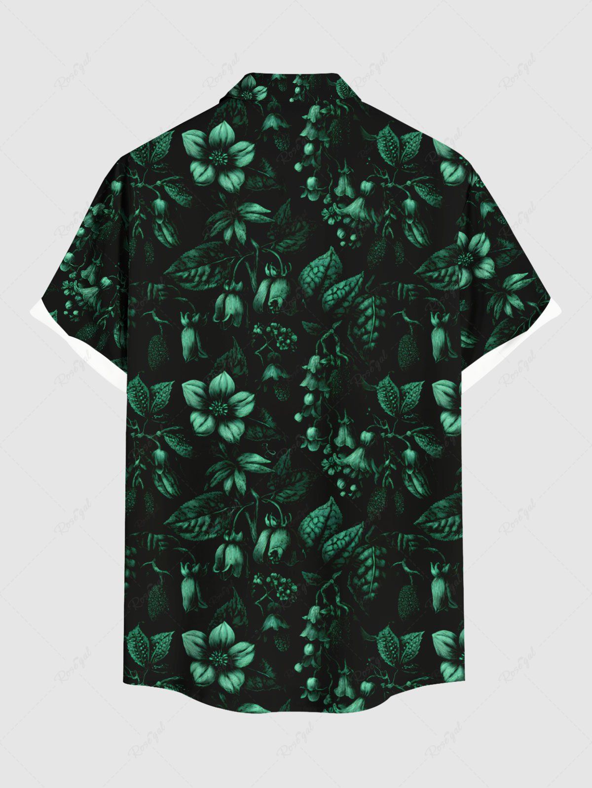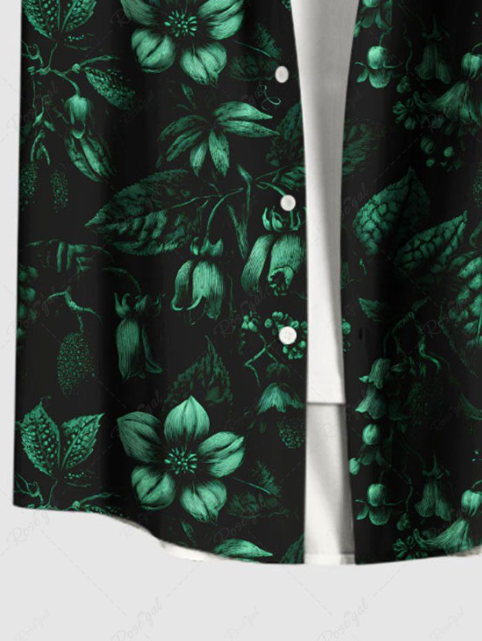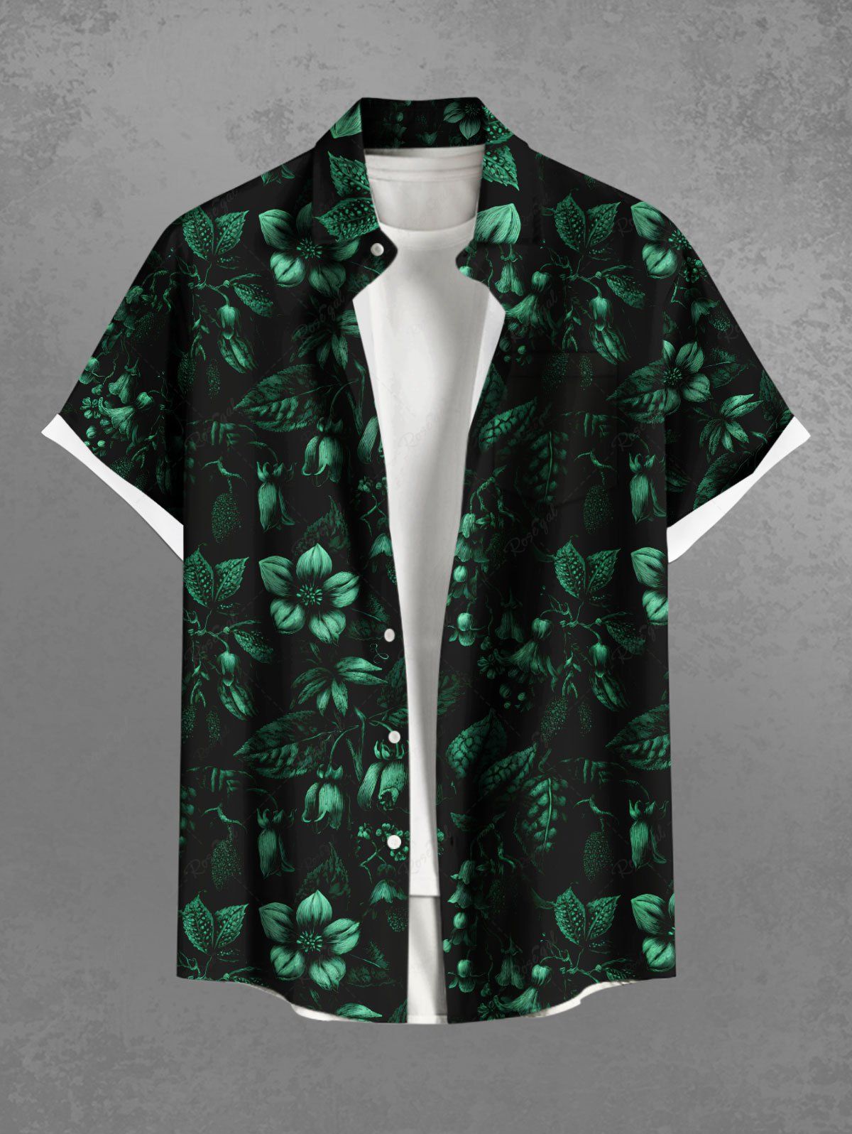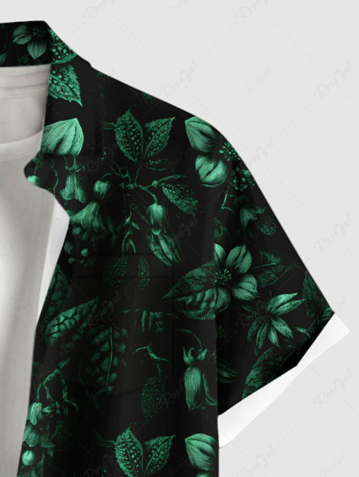 Gothic Plus Size Flowers Leaf Print Buttons Pocket Shirt For Men