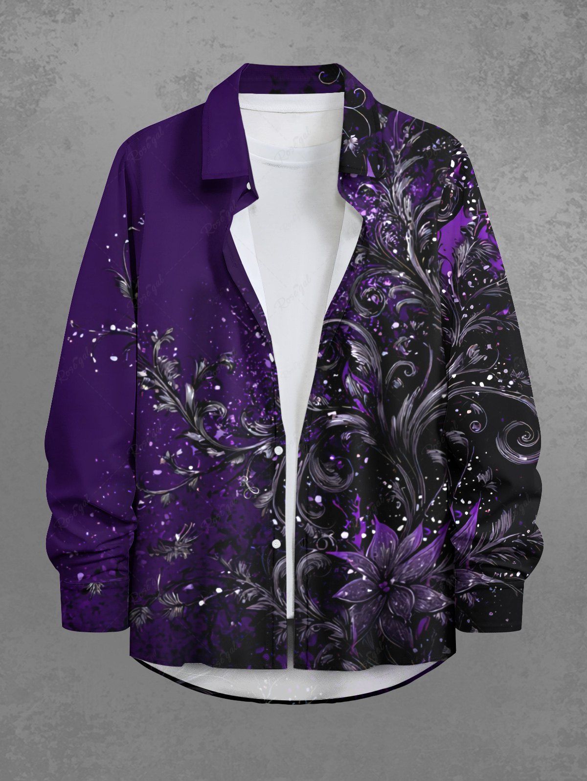 Gothic Plus Size Flowers Print Long Sleeves Buttons Pocket Shirt For Men