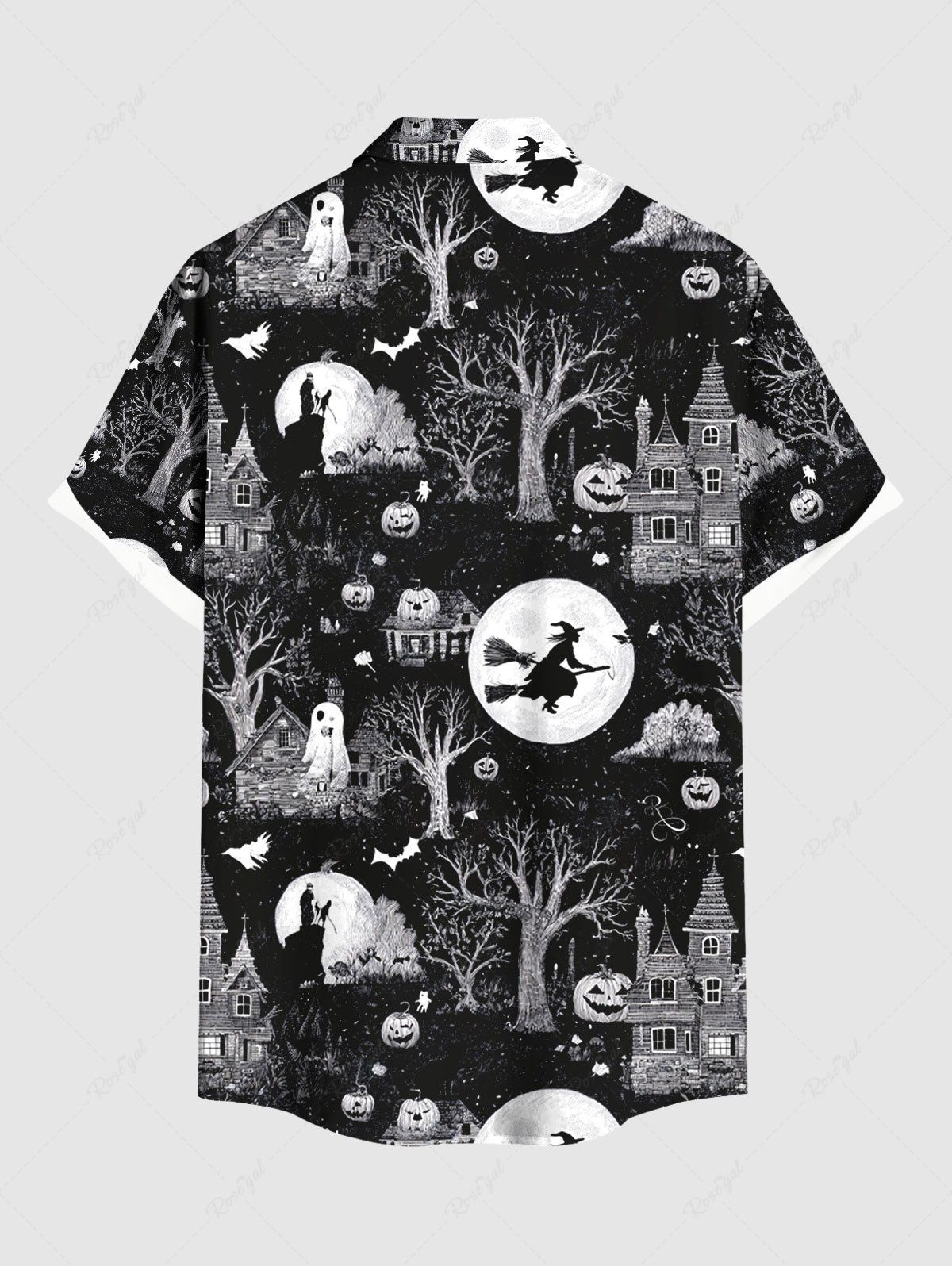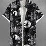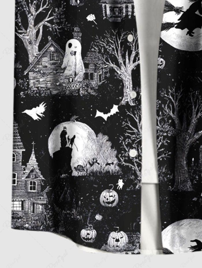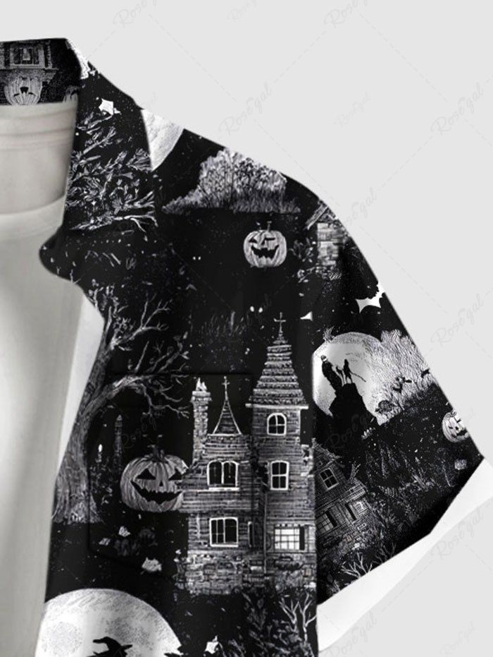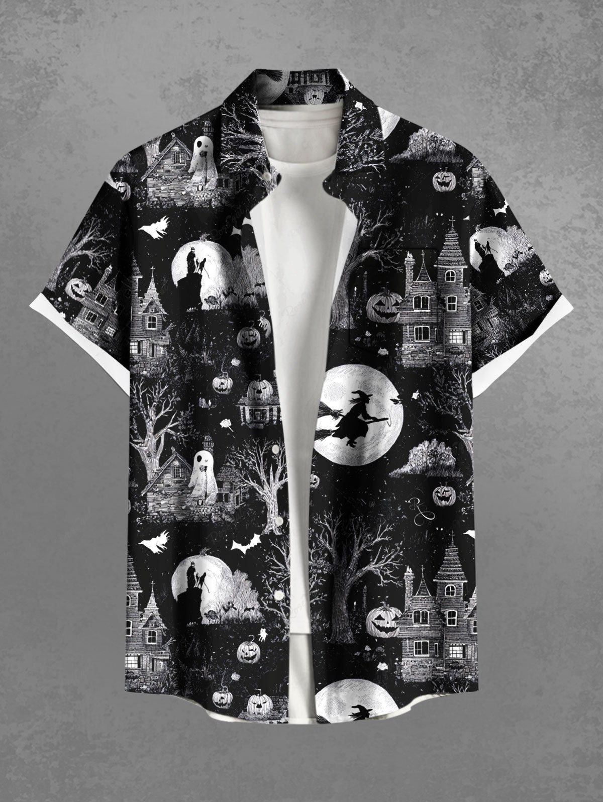 Gothic Plus Size Halloween Pumpkin Ghost Moon Tree Bat Print Buttons Pocket Shirt For Men
