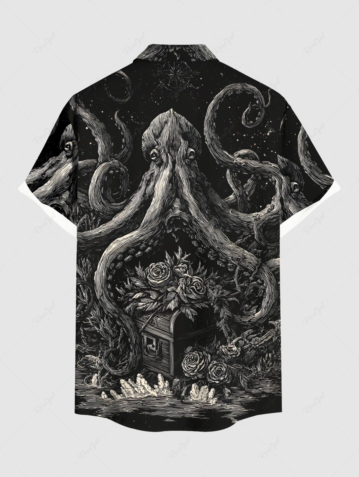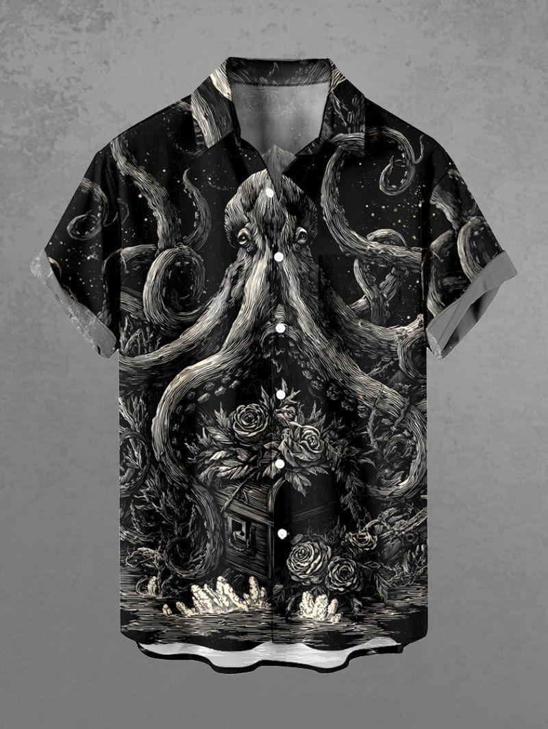 Gothic Plus Size Octopus Rose Flowers Print Buttons Pocket Shirt For Men