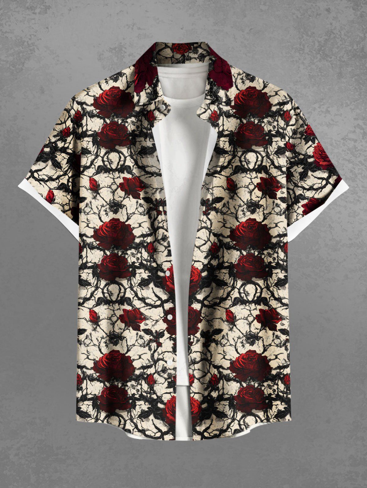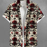 Gothic Plus Size Rose Flowers Leaf Branch Print Buttons Pocket Shirt For Men