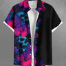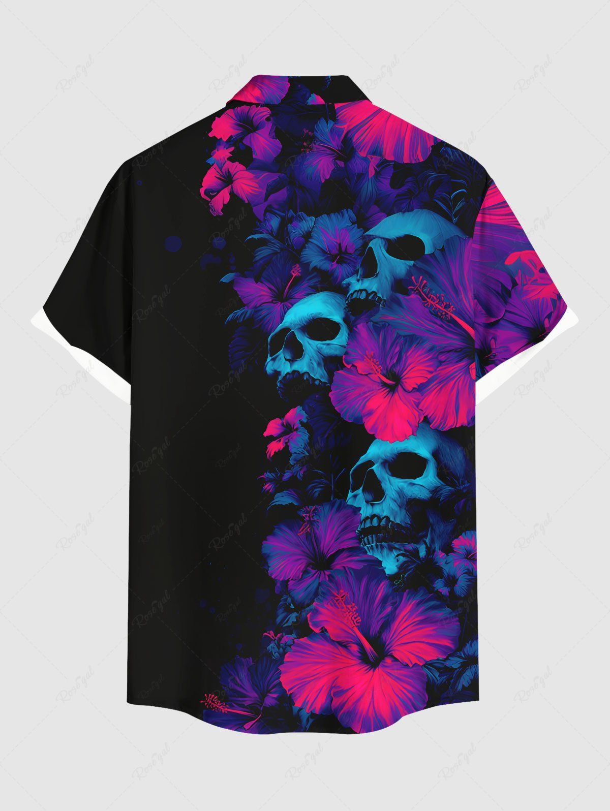 Gothic Plus Size Skull Hibiscus Flower Print Hawaii Button Pocket Shirt For Men