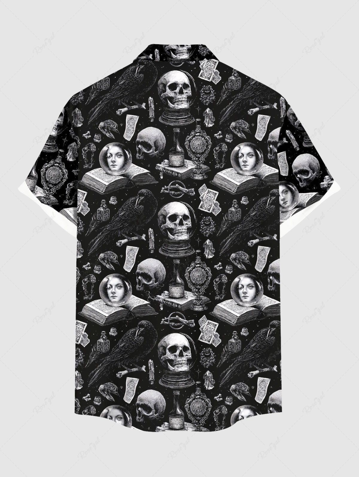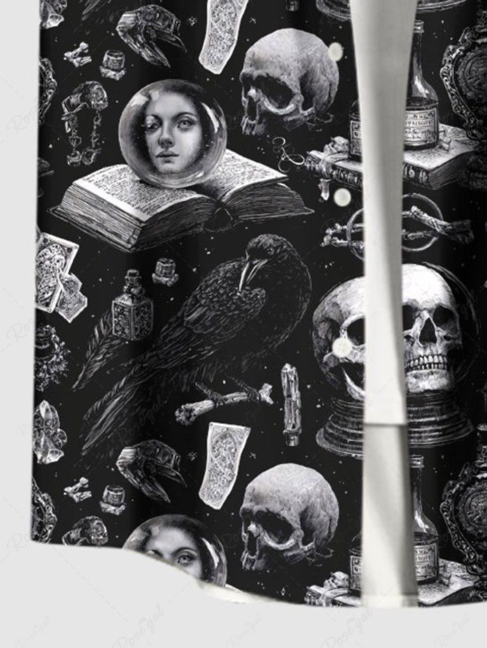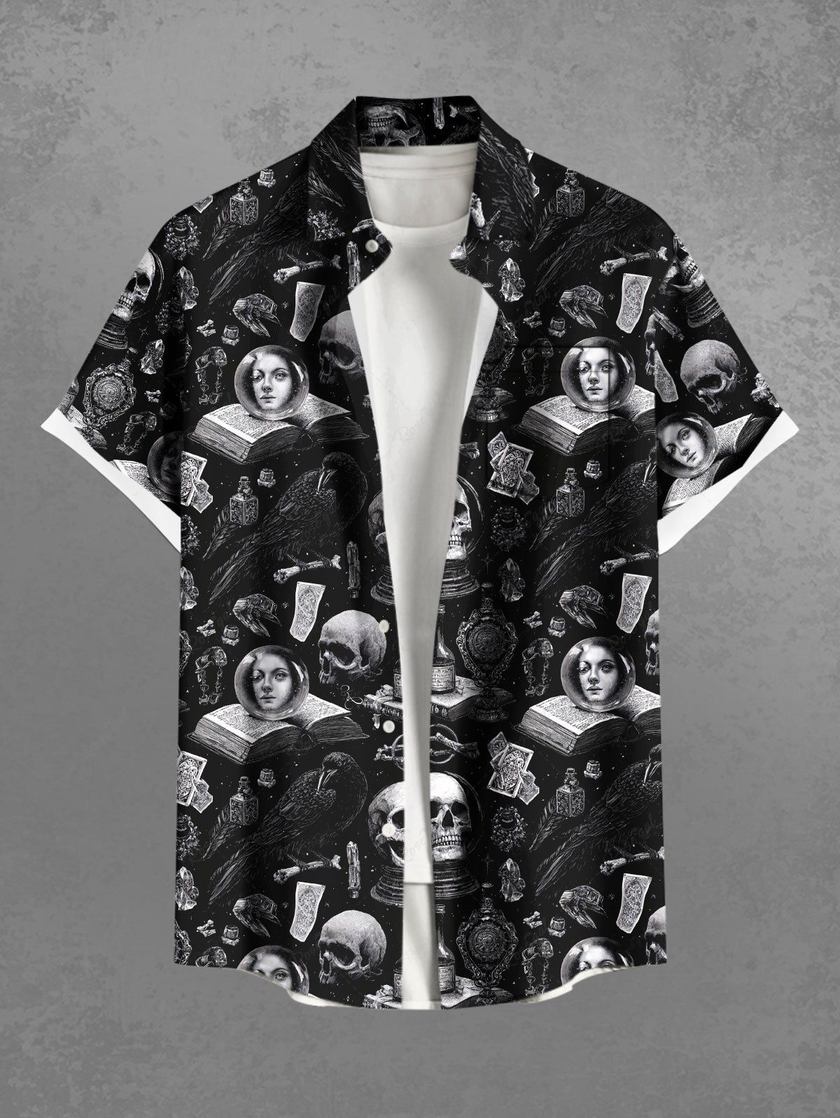 Gothic Plus Size Skulls Books Dollar Print Buttons Pocket Shirt For Men