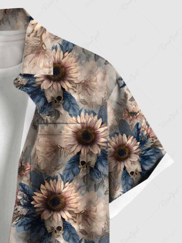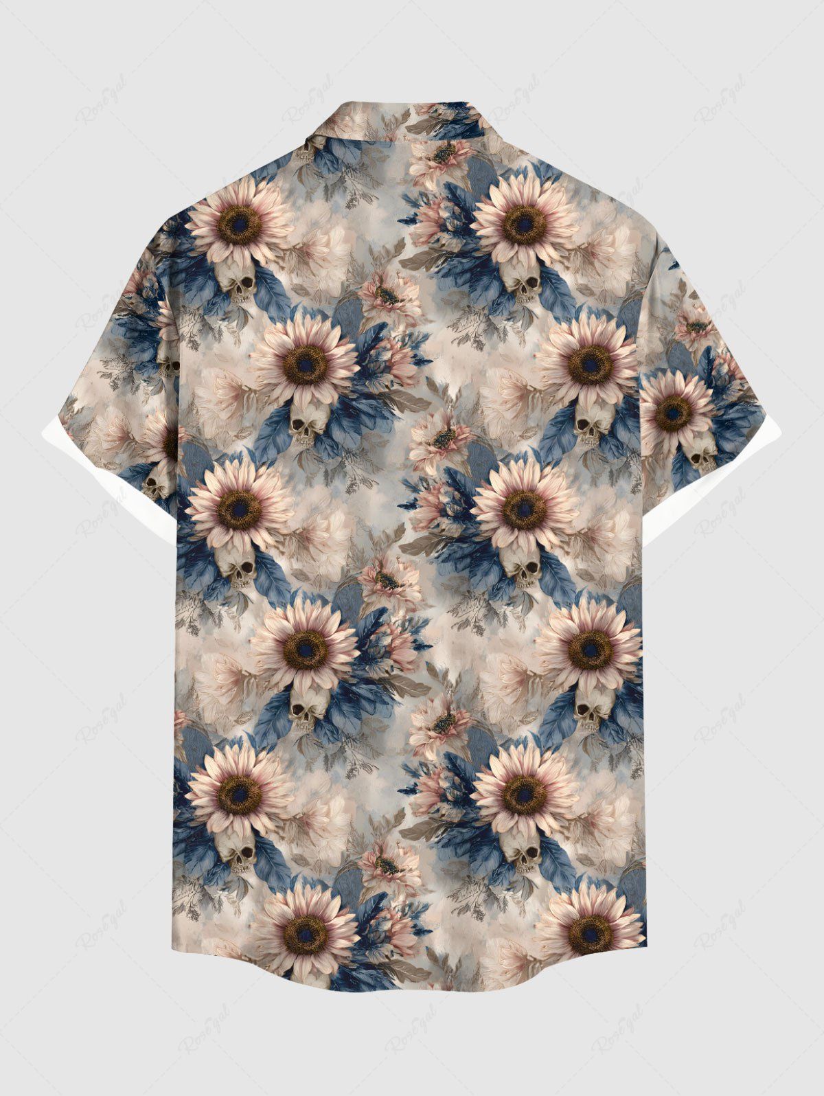 Gothic Plus Size Sunflowers Leaf Skulls Print Buttons Pocket Shirt For Men