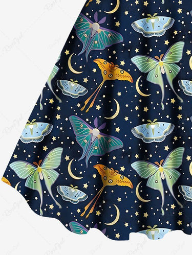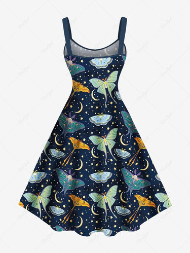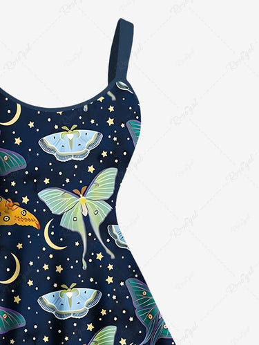 Gothic Plus Size Butterfly Moon Star Galaxy Print A Line Tank Dress