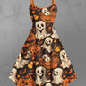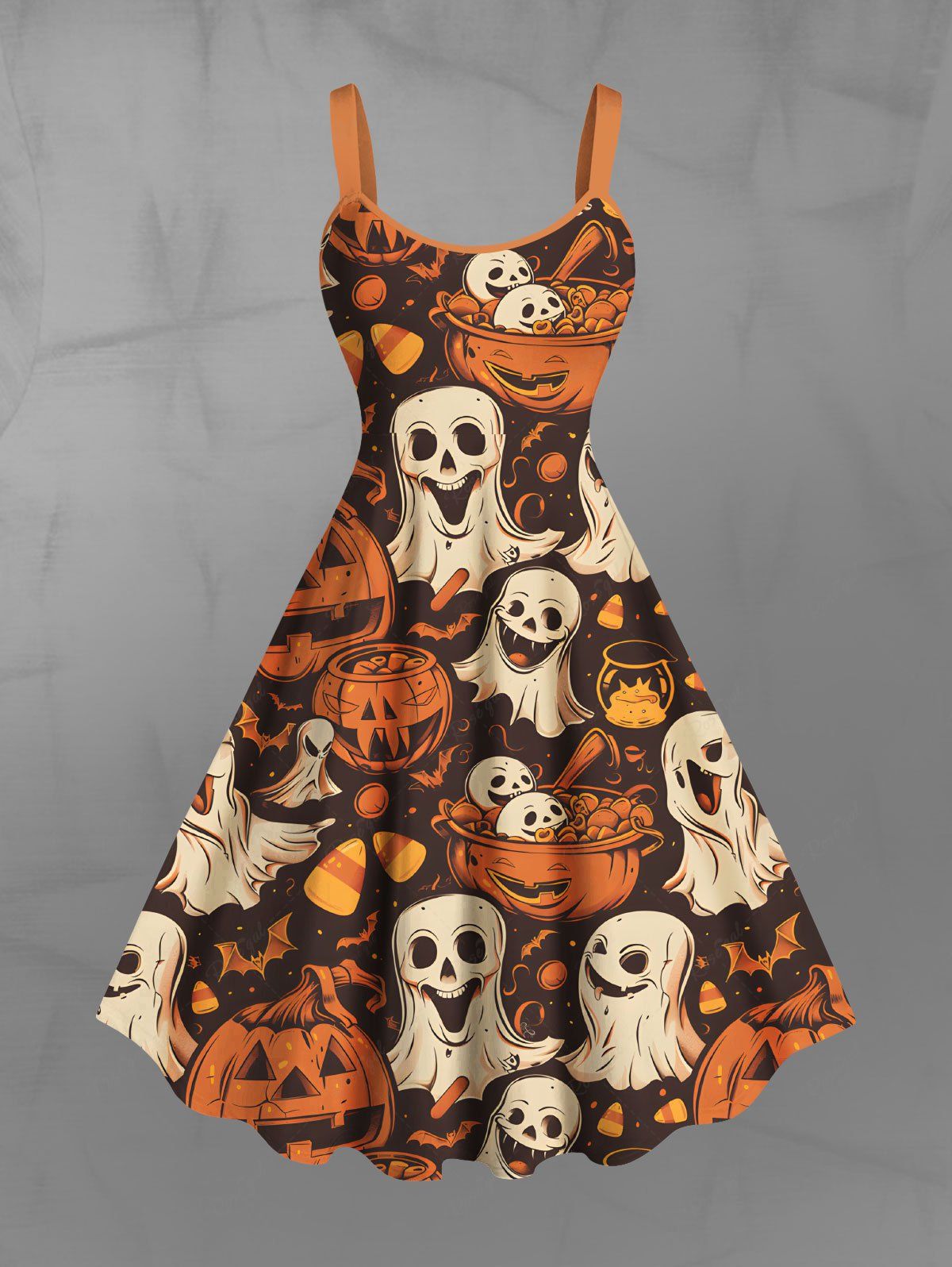 Gothic Plus Size Pumpkin Ghost Bat Print Halloween A Line Dress