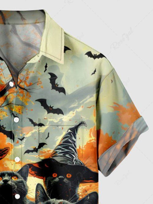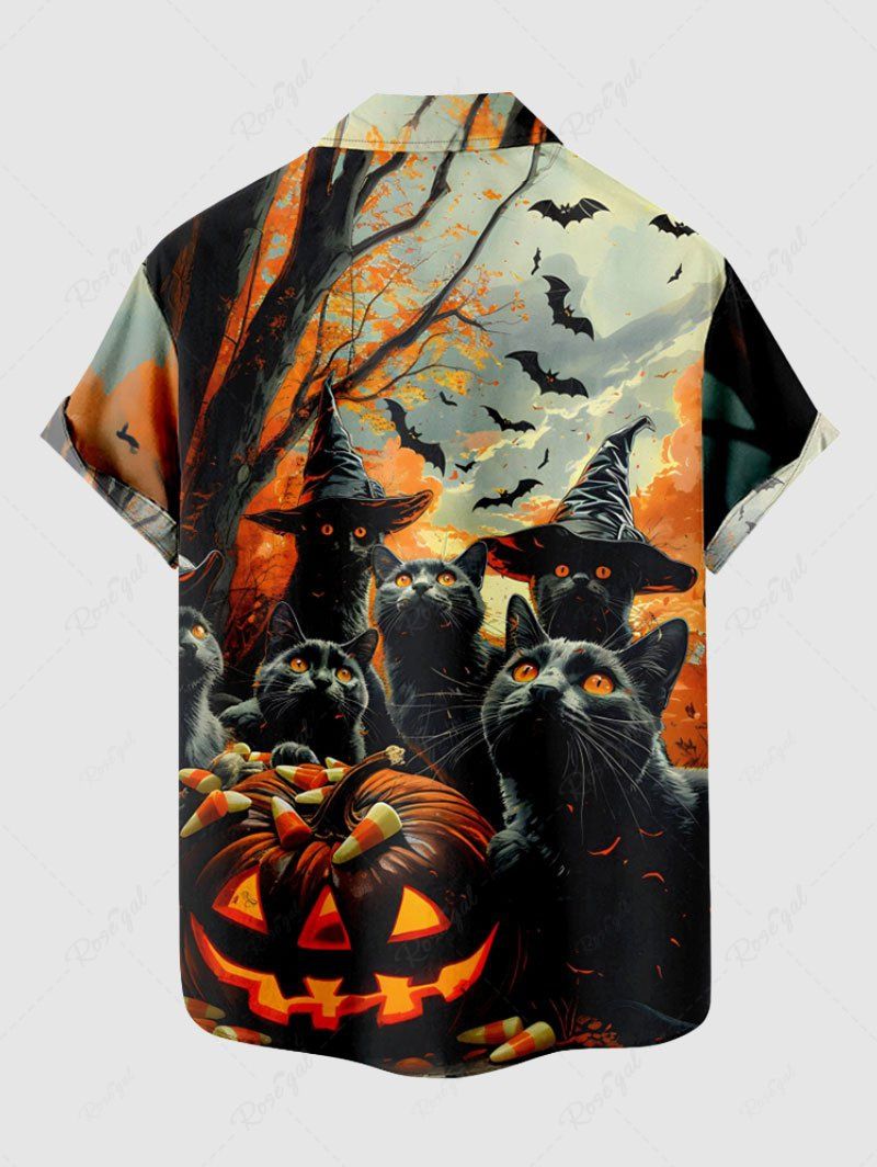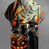 Gothic Plus Size Halloween Pumpkin Cat Bat Tree Print Buttons Pocket Shirt For Men