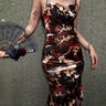 Gothic Plus Size Cinched Cowl Front Renaissance Print Mermaid Dress