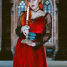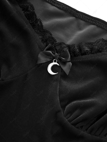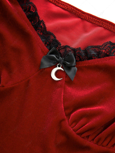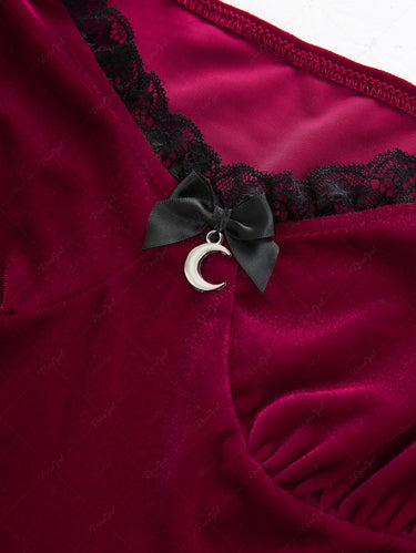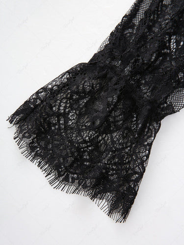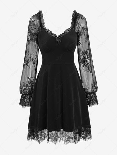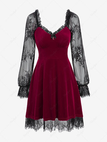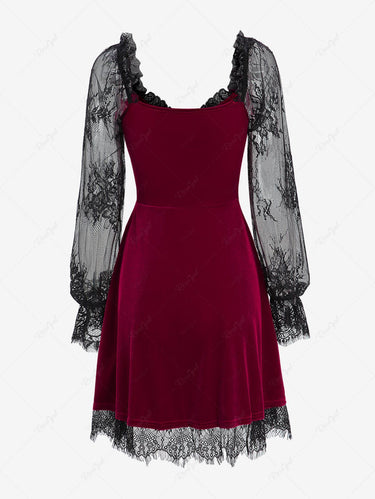 Gothic Floral Lace Poet Sleeves Patchwork Velvet Layered A Line Dress