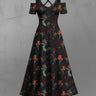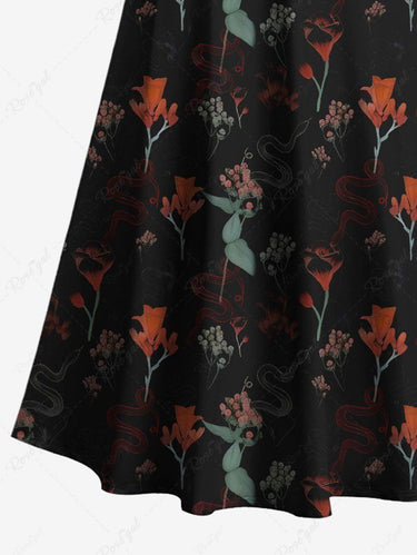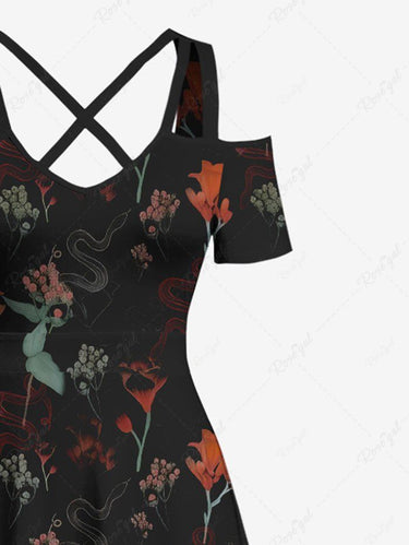 Gothic Plus Size Floral Snake Print Cold Shoulder Crisscross A Line Maxi Dress