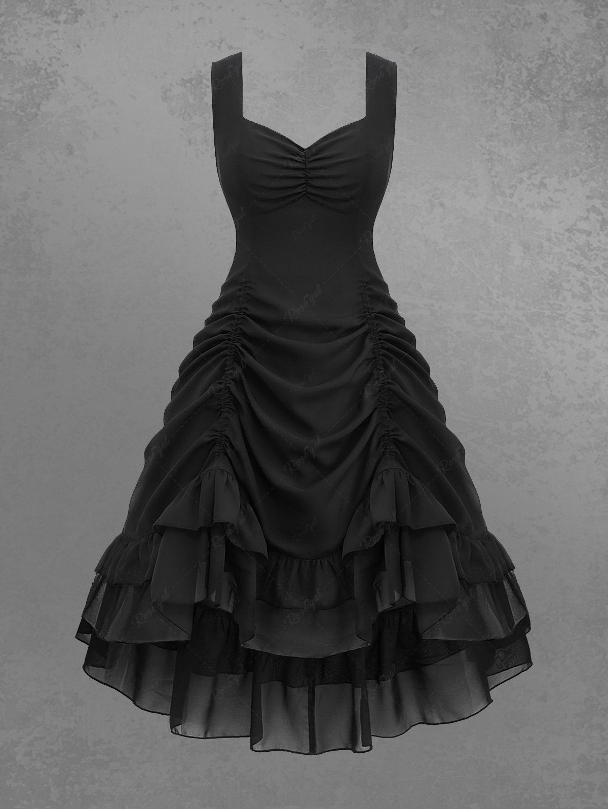SchnellansichtGothic Plus Size Floral Lace Panel Cutout Buckle Layered Chiffon Handkerchief Dress(3 Days Delivery)$96.00$50.00 /Optionen wählen