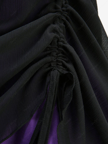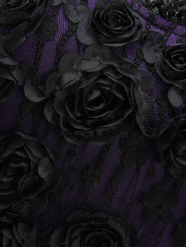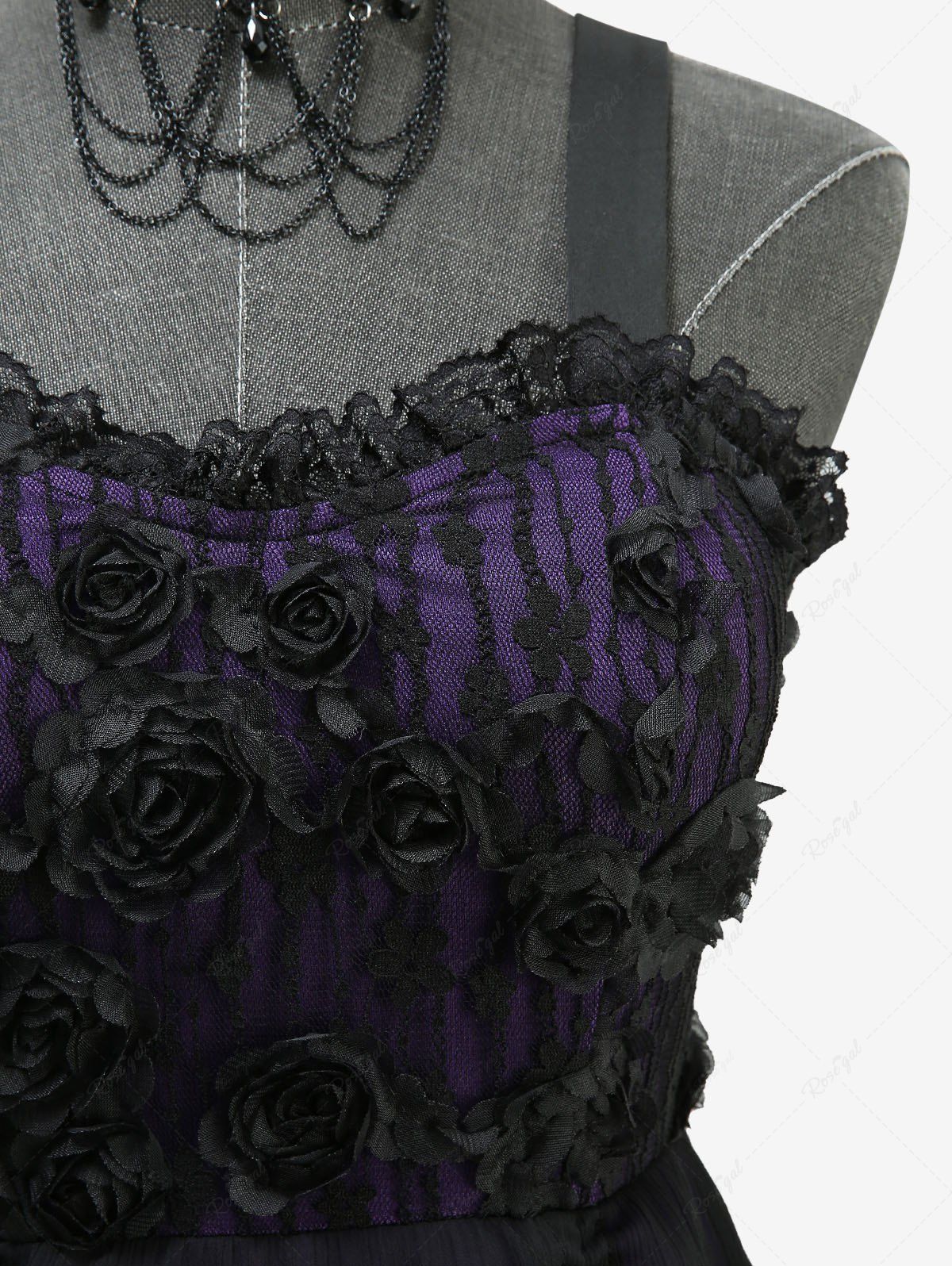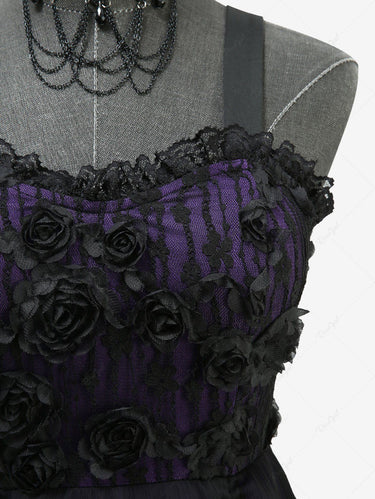 Gothic Rose Flower Lace Panel Chiffon Textured Cinched A Line Tank Dress