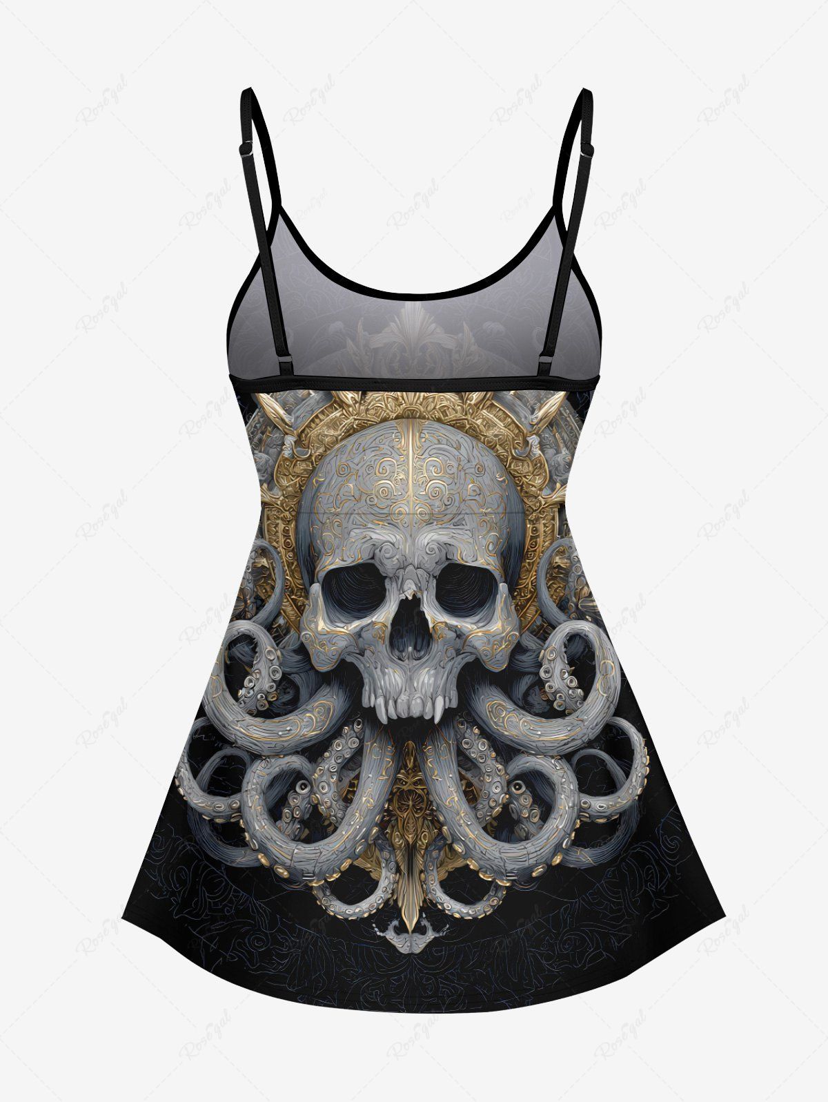 Gothic Skull Octopus Mirror Print Tankini Top(Adjustable Shoulder Strap)