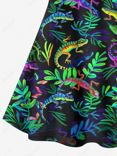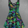 Gothic Plus Size Colorful Gecko Leaf Print Crisscross A Line Cami Dress